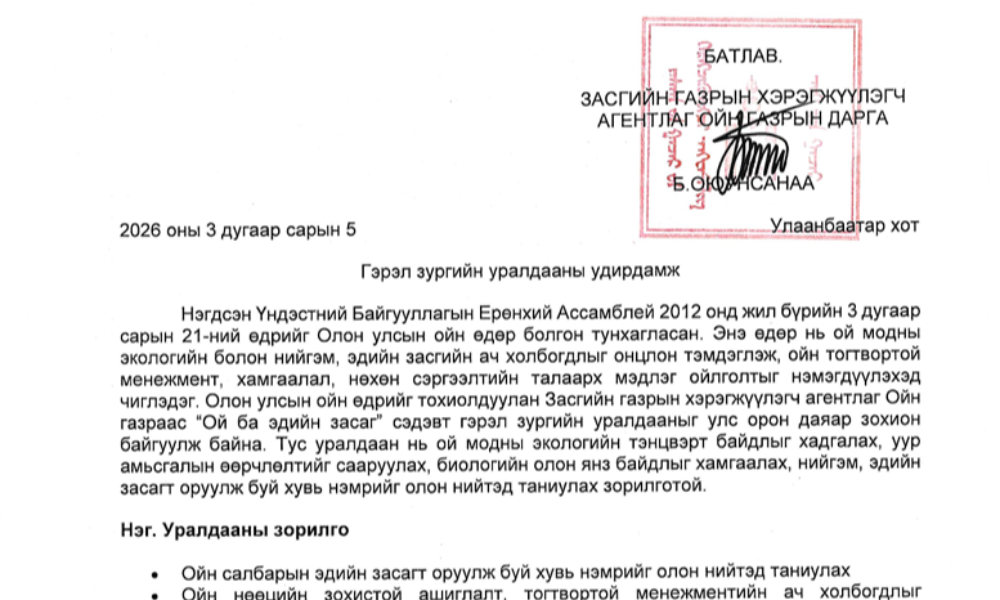 Засгийн газрын хэрэгжүүлэгч агентлаг Ойн газар. Бүх эрх хуулиар хамгаалагдсан. 2026 он.